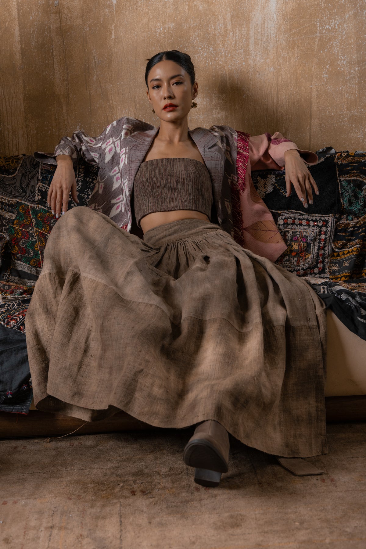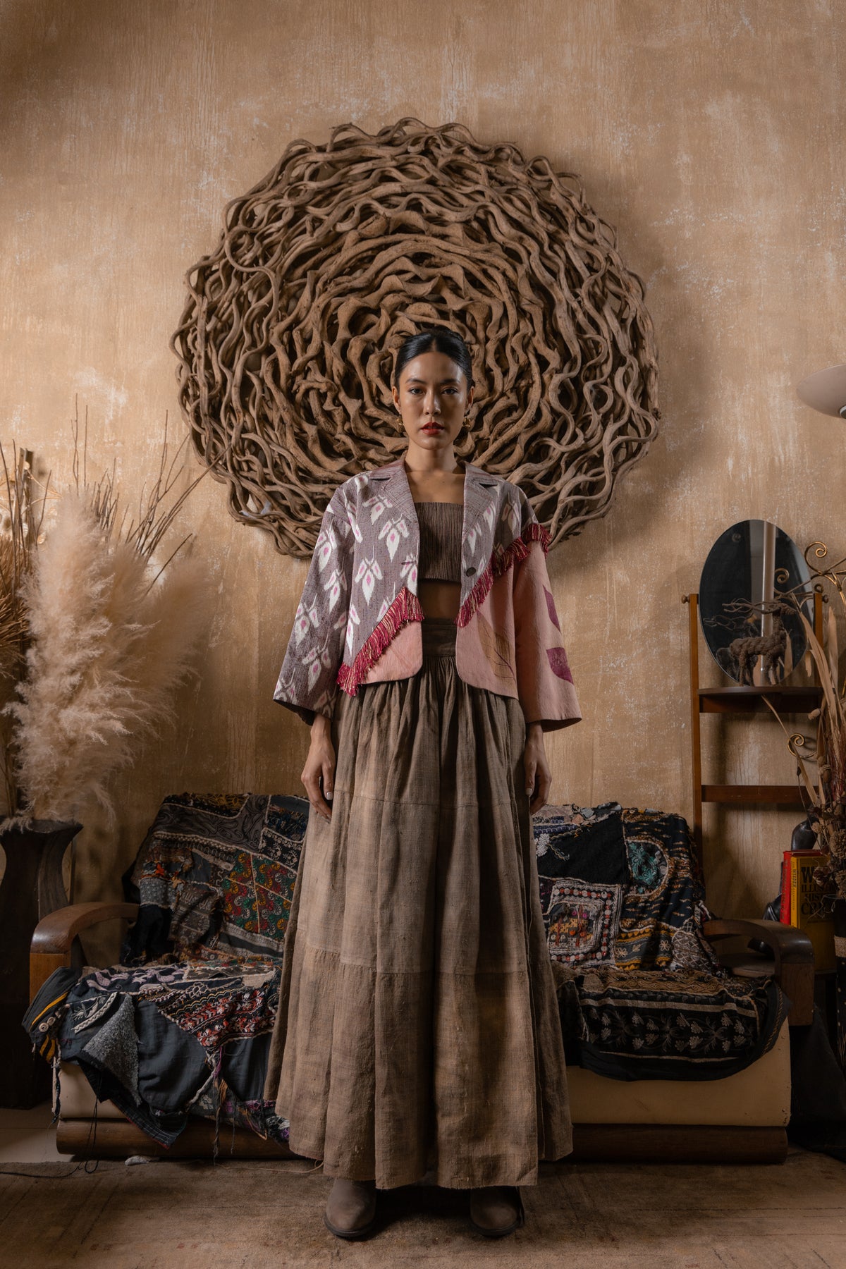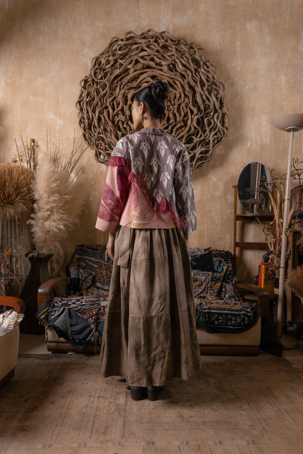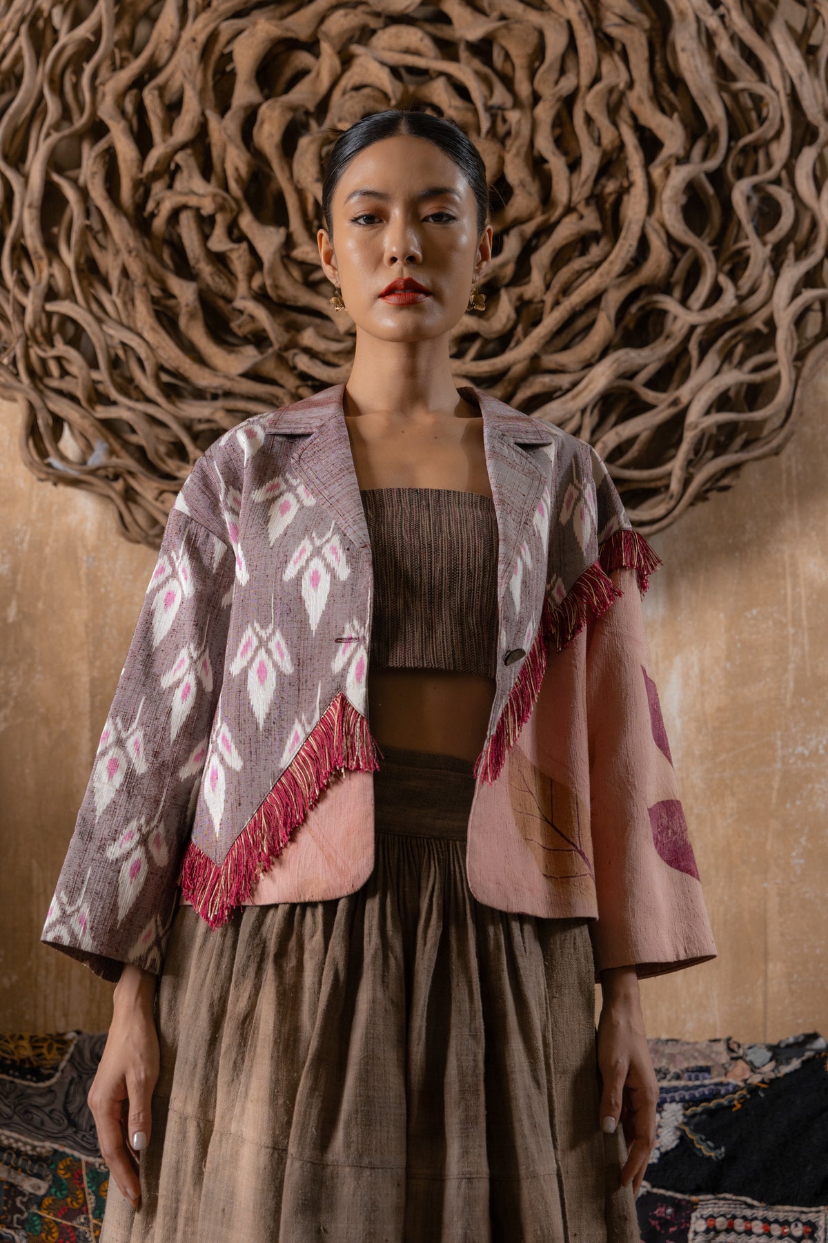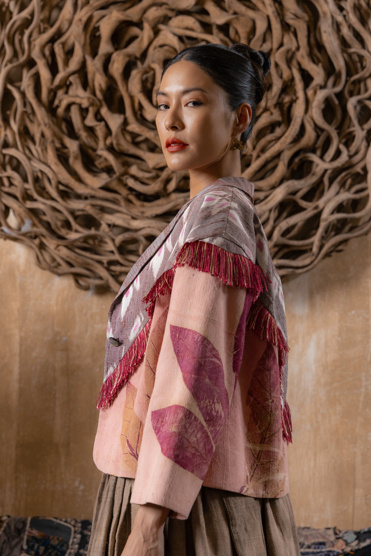 Loose fit blazer with ‘Peaceful Floral’ Mudmee and eco-printed Thai Silk.